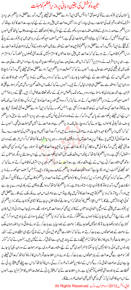 Sanjeeda Koshish Ki Yakeen Dihani Pr Wazir E Azam Ko Mohlat