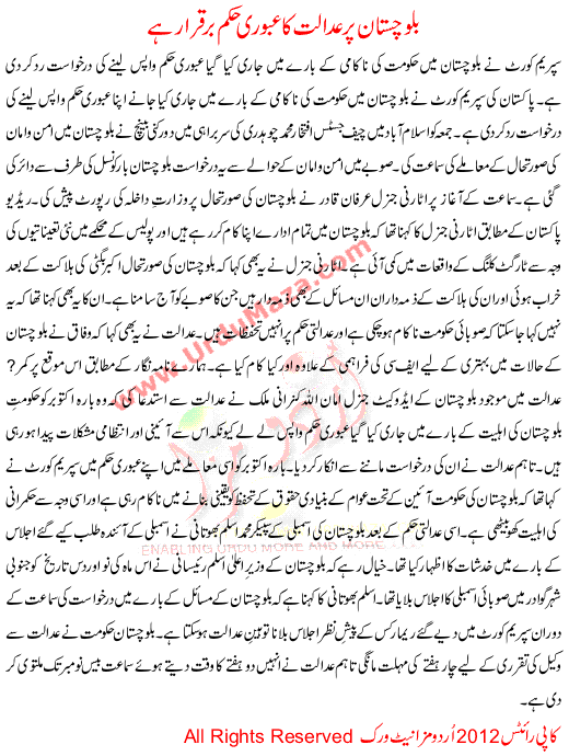 Balochistan Per Adalat Ka Abori Hukam Barqrar Hai