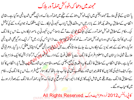 Mehmend Me Dhamaka Khud Kush Hamla Awar Halak
