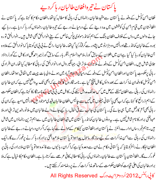 Pakistan Ne 13 Afghan Talban Riha Kar Diye