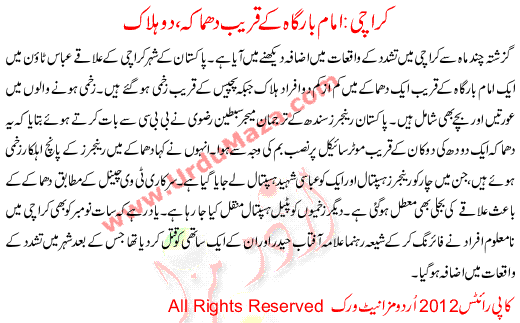 Imam Barga K Qareeb Dhamaka 2 Halak Karachi