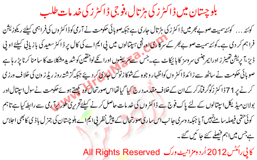 Balochistan Me Doctors Ki Hartal Foji Doctors Ki Khidmat Talab