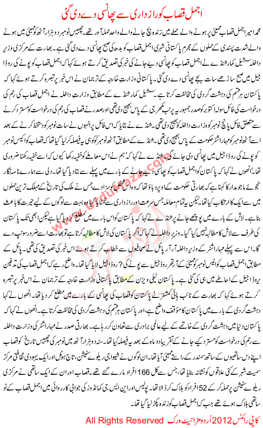 Ajmal Qasab Ko Razdari Se Phansai De Di Gaye