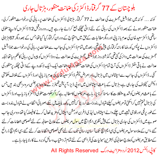 Balochistan K 77 Griftar Doctors Ki Zamanat Manzor Harrtal Jari