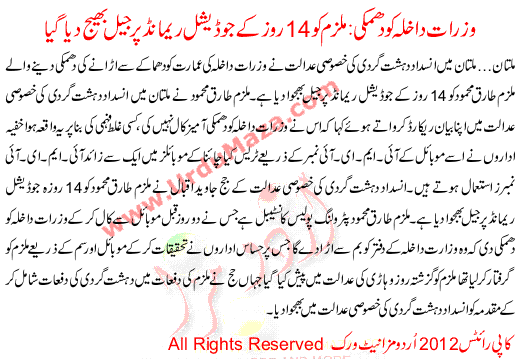 Wazart E Dakhla Ko Dhamki