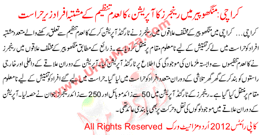 Mango Peer Me Rangers Ka Operation Kal Adam Tanzeem K Mushtba Afrad Zer E Harasat