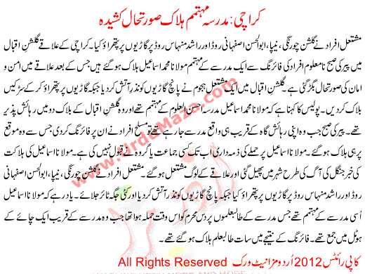 Madarisa Muhtimum Halak Sorat E Haal Kasheda Karachi