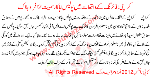 Firing K Waqiat Me Police Ehelkar Samet 2 Afrad Halak Karachi