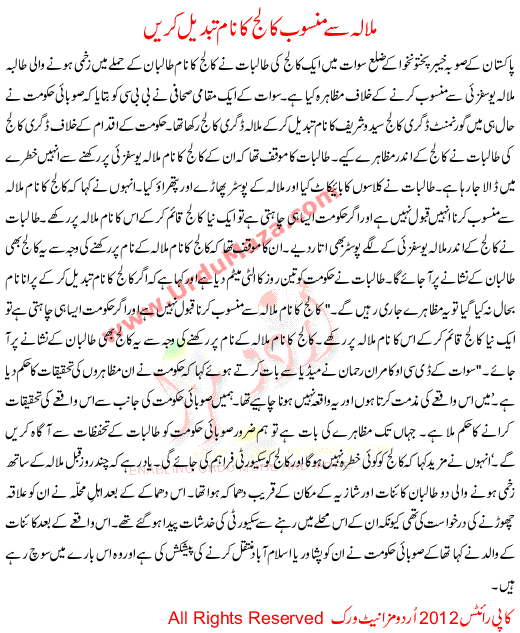 Malala Se Mansoob Collage Ka Name Tabdeel Kare