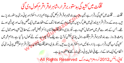 Gilgat Me Kashedgi Badastor Barqrar Shahra E Qaraqram Khol Di Gate