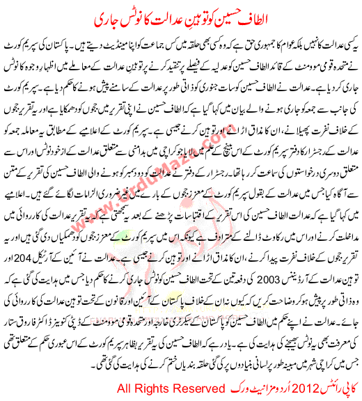 Altaf Hussain Ko Tohin E Adalat Ka Notice Jari