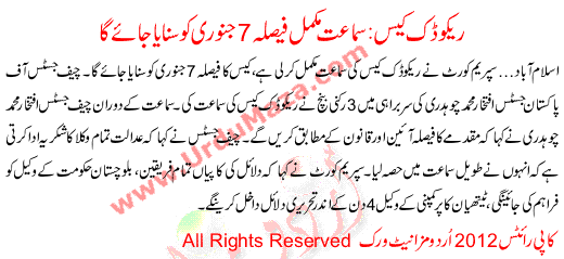 Recodic Case Samat Mukamal Faisla 7 January Ko Sunaya Jaye Ga