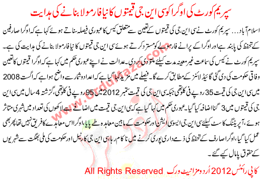 Supreme Court Ki Ogra Ko Cng Qeemto Ka New Farmola Banane Ki Hadayat