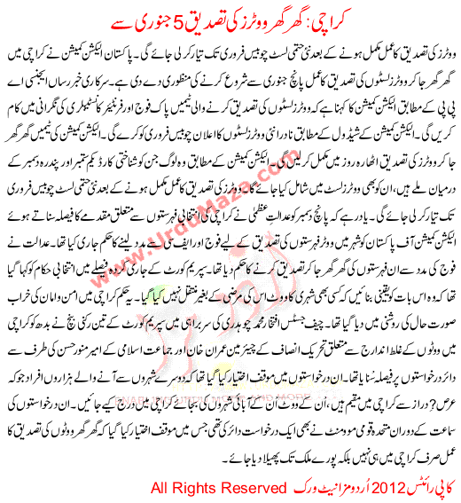 Ghar Ghar Voter Ki Tasdeeq 5 January Se Ho Gi Karachi