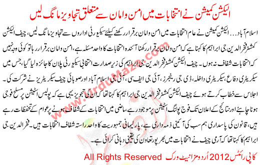 Election Comission Ne Intikhabat Me Aman O Aman Se Mutaliq Tajaweez Mang Li