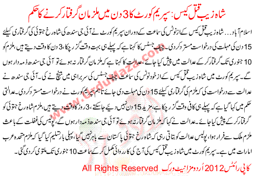 Supreme Court Ka 3 Dim Me Mulzim Griftar Karne Ka Hukam Shahzeb Qatal Case