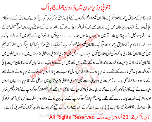 Janobi Wazerastan Me Daroon Hamla 8 Halak