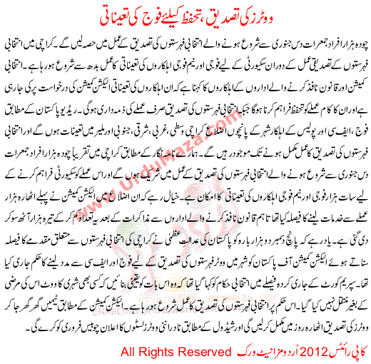 Vooters Ki Tasdeeq Tasdeeq K Lye Foj Ki Tainati