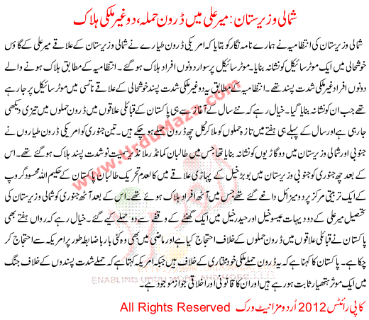 Meer Ali Me Daroon Hamle 2 Gher Mulki Halak Shamali Wazerastan