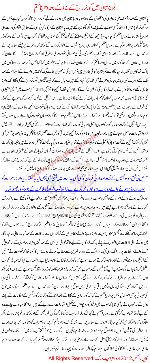 Balochistan Me Governer Raj K Baad Dharna Khatam