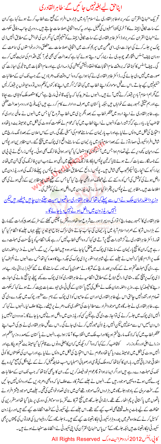 Apna Haq Liye Bagher Nahi Jaye Ge Tahirul Qadri