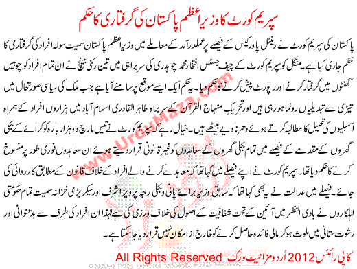 Supreme Court Ka Wazer E Aazam Ki Griftari Ka Hukam