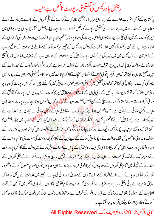 Rental Power Case Ki Tafteshi Report Naqas Hai Naib