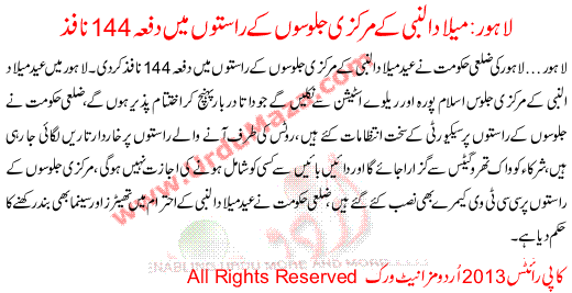 Milad Un Nabi K Markazi Jaluso Me Dafa 144 Nafiz Hogi Lahore