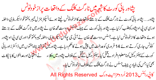 Peshawar High Court Takes Suo Moto Notice Over Target Killing In The City