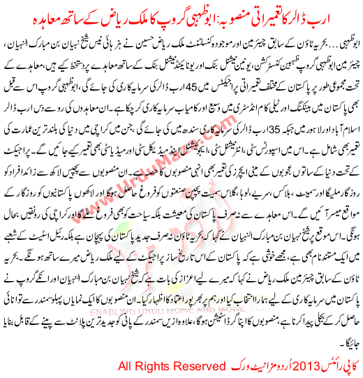 Abu Dhabi Group Of Companies Signed A Contract Of 500 Million Us Dollars Investment In Pakistan With Malik Riaz