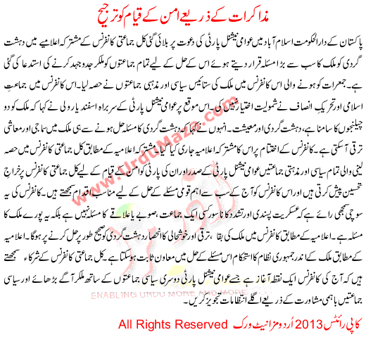 27 Political Parties Agreed On Bring Peace To Pakistan Through Dialogue With The Talibans