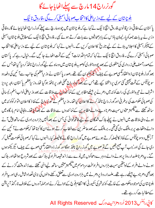 Governor Rule In Baluchistan Will Be Withdrawn Before 14th Of March