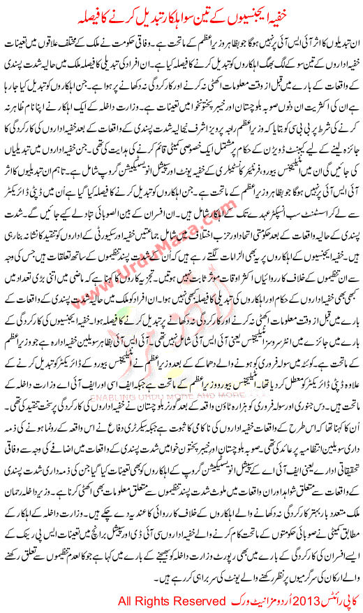 300 Officers Of Secret Agency To Be Transferred To Other Places