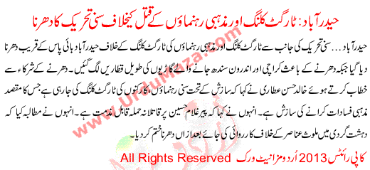 Target Killing Or Mazhabi Rehnmao K Qatal K Khilaf Suni Tehreek Ka Dharna Haiderabad