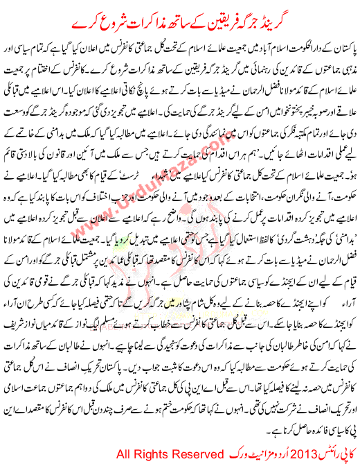 Grand Jirga Fareeqen K Sath Muzakrat Shuro