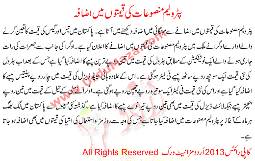 Petroliam Masnoart Ki Qeemto Me Izafa