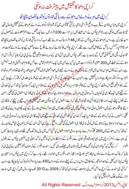 Karachi Dhamaka Taftesh Me Peshraft Na Ho Saki