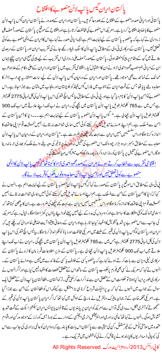 Pak Iran Gas Pipe Line Mansobe Ka Iftitah