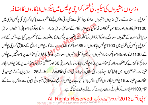 Wazer O Masheero Ki Security Khatam Karachi K Police Ehelkaro Ki Senkro Ka Azafa