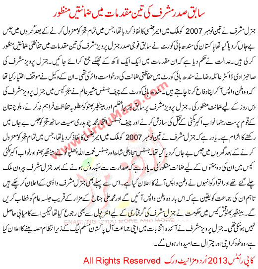 Sabiq Sadar Musharaf Ki 3 Muqadmat Me Zamanat Manzoor