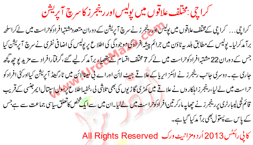 Karachi Mukhtalif Elaqo Me Ranjers Or Police Ka Operation