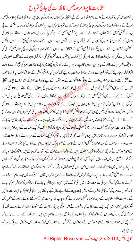 First Phase Of Elections 2013 Is Completed, Now Scrutiny Of Nomination Forms Has Started In Election Commission
