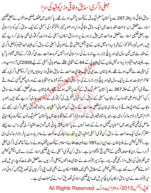 Sabiq Wafaqi Wazeer Ko Qeed Ki Saza Jali Digri