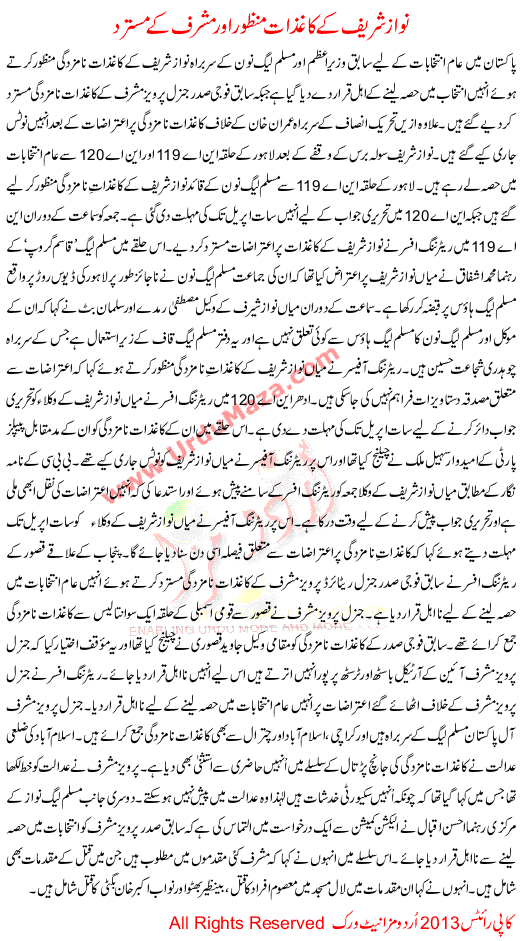 Nawaz Sharief K Kaghzat Manzoor Musharaf K Mustarad