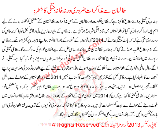 Disscusion With Taliban Is Necessary Now To Stop Civil War.