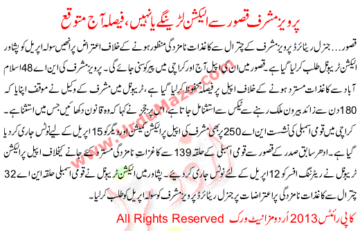 Perhaps Today It Will Be Declare That Perwez Musharaf Will Took Part In Election From Qasoor District Or Not.