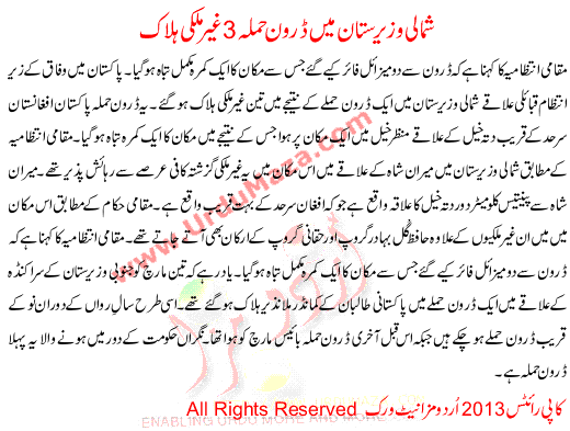 3 Foriegners Killed In Shumaili Wazeristan In Three Drone Attack