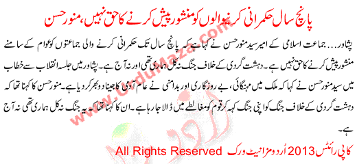 Munawar Hasan Said That The Parties Who Remained In Power For The Past Five Years,have No Right To Ask For Votes