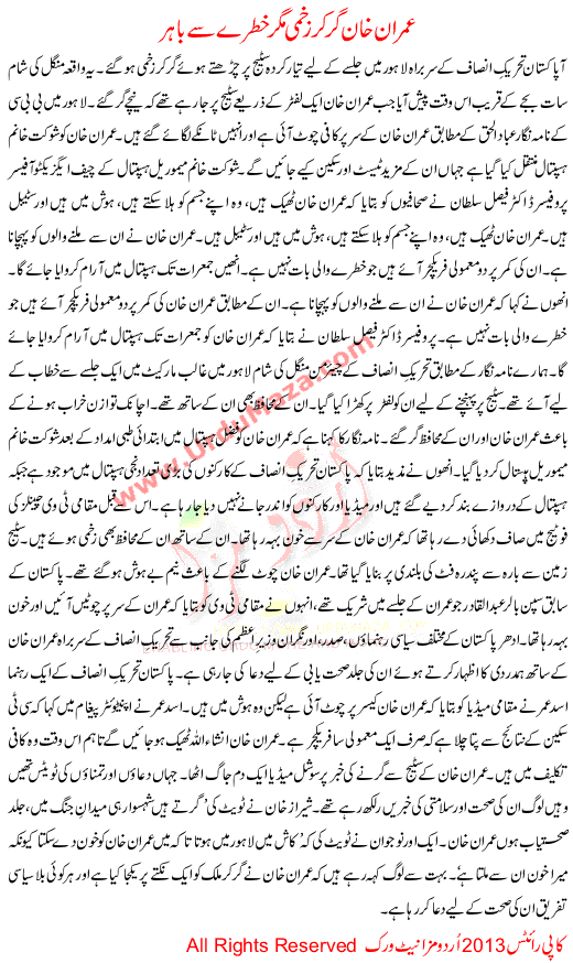 Imran Khan Suffering Injuries To His Head , His Condition Is Out Of Danger