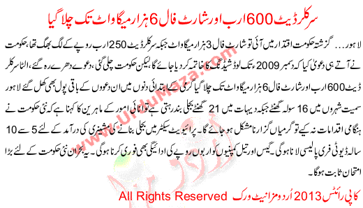 Shirt Fall Has Reached On 6 Thousand Megawatt And Circular Debt At 600 Billon